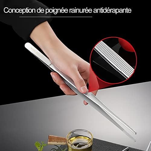 【CONCEPTION SCIENTIFIQUE】Les dents fines sur la pointe peuvent empêcher les objets de glisser, et les dentelures sur la poignée peuvent empêcher les mains de glisser. Les pointes des pince cuisine sont fines, ce qui les rend faciles à tenir et à étirer dans des espaces restreints. Après chaque utilisation, essuyez simplement avec de l’eau propre ou placez-le au lave-vaisselle.