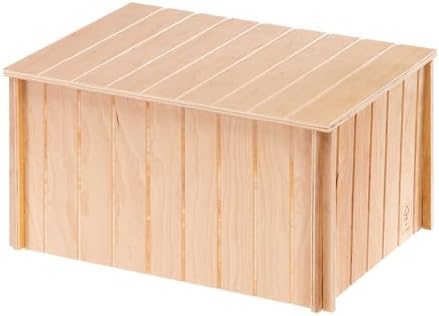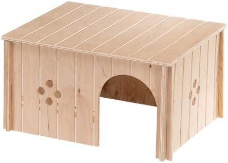Cette grande maison de lapin peut être ajoutée comme accessoire à votre cage de rongeurs. Entièrement en bois, provenant uniquement de forêts gérées de manière responsable, il s’agit d’un produit robuste, doté d’une grande porte d’entrée, ainsi que de petites ouvertures avec des trous sur les côtés. À l’intérieur de la maison, votre lapin trouvera un endroit confortable pour se reposer et dormir, loin du bruit. Cette maison de lapin est bien isolée et fournit un endroit de protection utile.