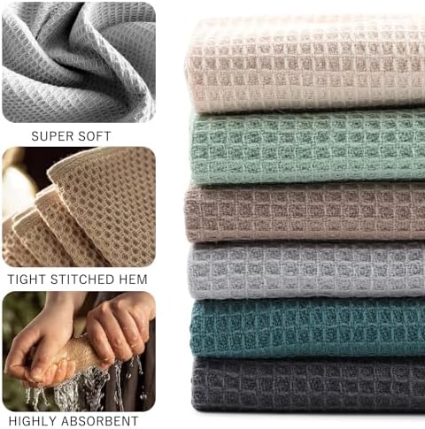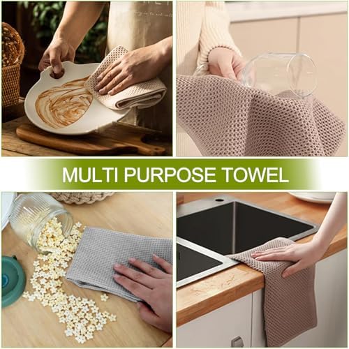 [Ultra absorbant et séchage rapide]: La construction gaufrée unique permet au torchon d’absorber l’eau plus rapidement que les torchons ordinaires, l’absorption supérieure ne laisse pas de traces ni de peluches, et permet de sécher, d’essuyer et de nettoyer efficacement la cuisine.