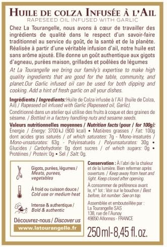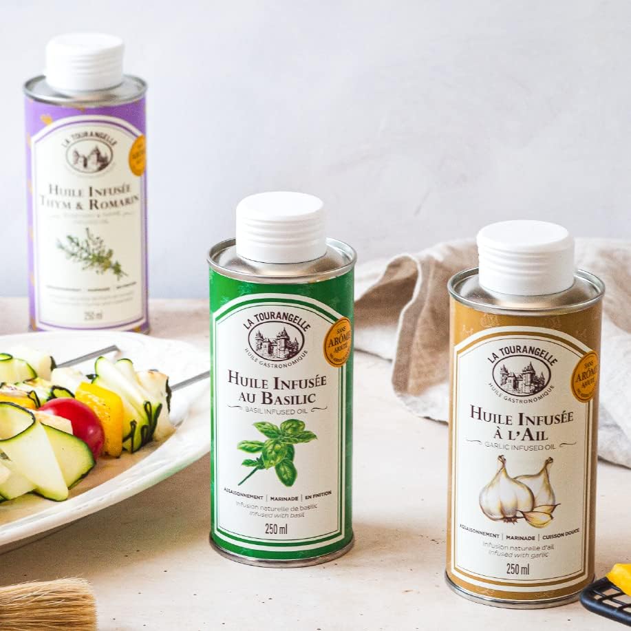 3 HUILES DE QUALITÉ : Ces 3 huiles La Tourangelle sont élaborées en France selon une recette unique : le basilic frais, les gousses d’ail et le bouquet de Thym & Romarin ont longuement infusé pour apporter toute leur saveur à ces huiles gourmandes.