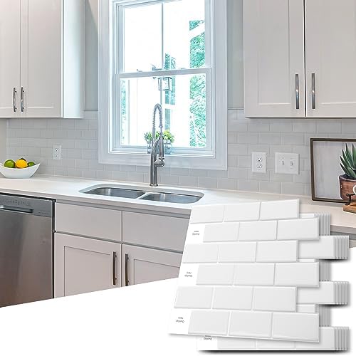 Lot de 10 Pièces,Credence Adhesive pour Cuisine,Carrelage Autocollant Métro Blanc,Papier Adhesif en Vinyle 3d Brique,30x30cm