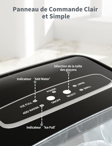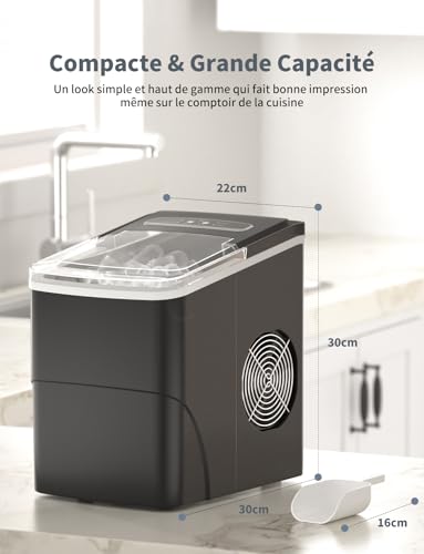 Notre machine à glaçons se distingue par son design moderne, son encombrement réduit et sa grande capacité. Elle s’adapte à tous les environnements: cuisine, atelier, bureau, camping-car, et bien plus encore.