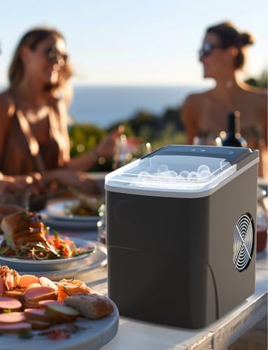 Machine à Glaçons, 12kg en 24h, 9 Glaçons en 6-8 Minutes, Automatique Compact Portable Machine à Glacons, pour la Maison/Cuisine/Bar