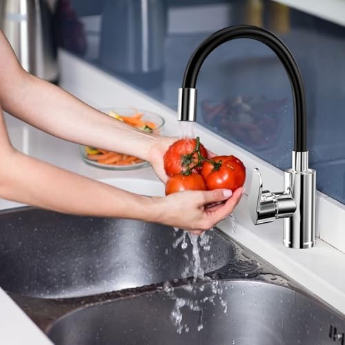 【Robinet flexible】Le robinet est équipé d’un tuyau flexible souple, le col noir mat peut être déformé, et vous pouvez également faire pivoter la buse du robinet de cuisine à 360° pour s’adapter à n’importe quelle situation